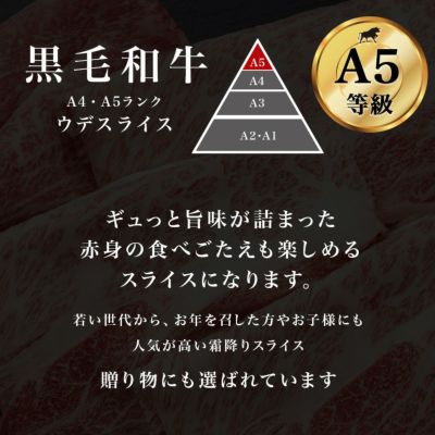 黒毛和牛【A5等級】肉質のバランスがとれており、あっさりとろける味わいが絶品!一度食べたら虜になる。ウデスライス 牛肉 美味しいもの。選べる400g・800g